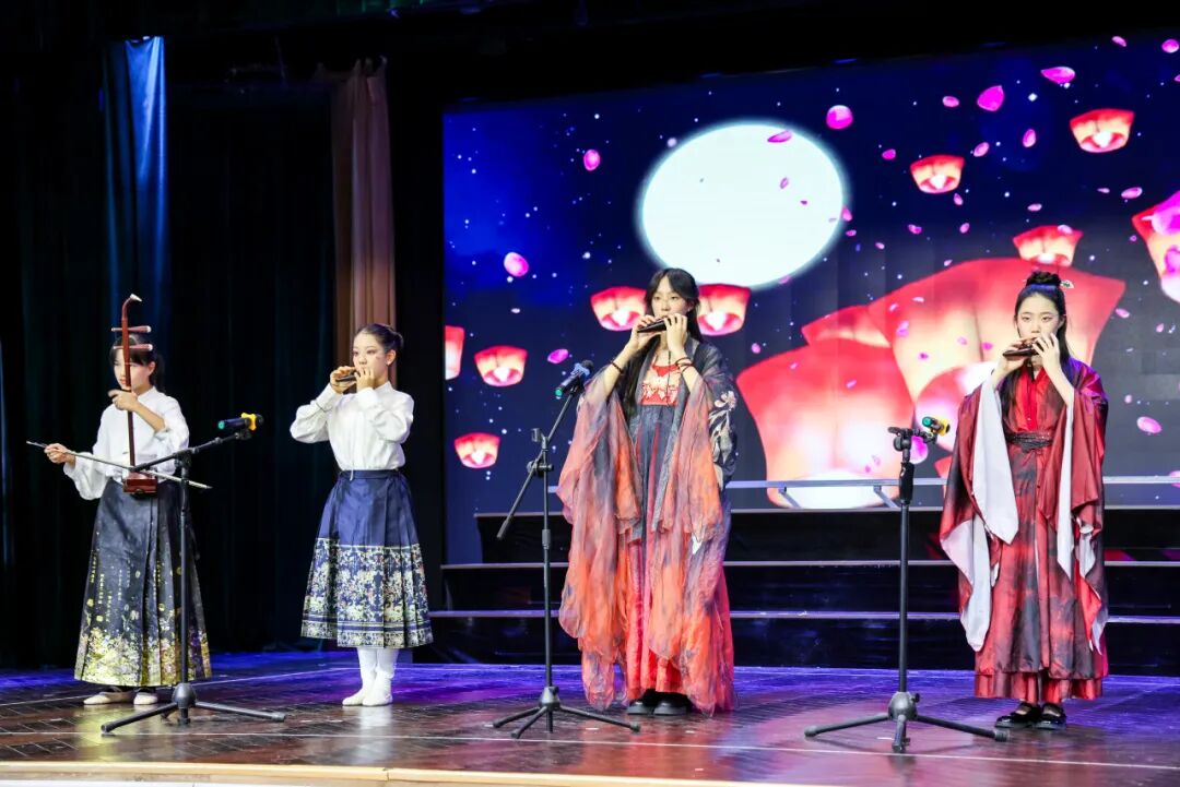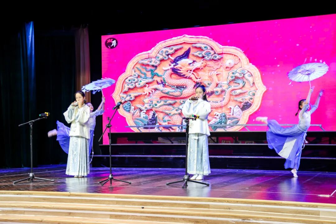 “国风雅韵·陶笛吟风”部分,《青花瓷》的演唱伴以民族鼓点,《声声慢》中舞姿翩跹,《赤伶》融入京剧念白,让国风与陶笛碰撞出独特韵味。