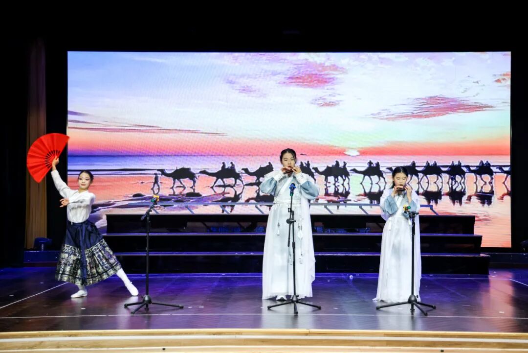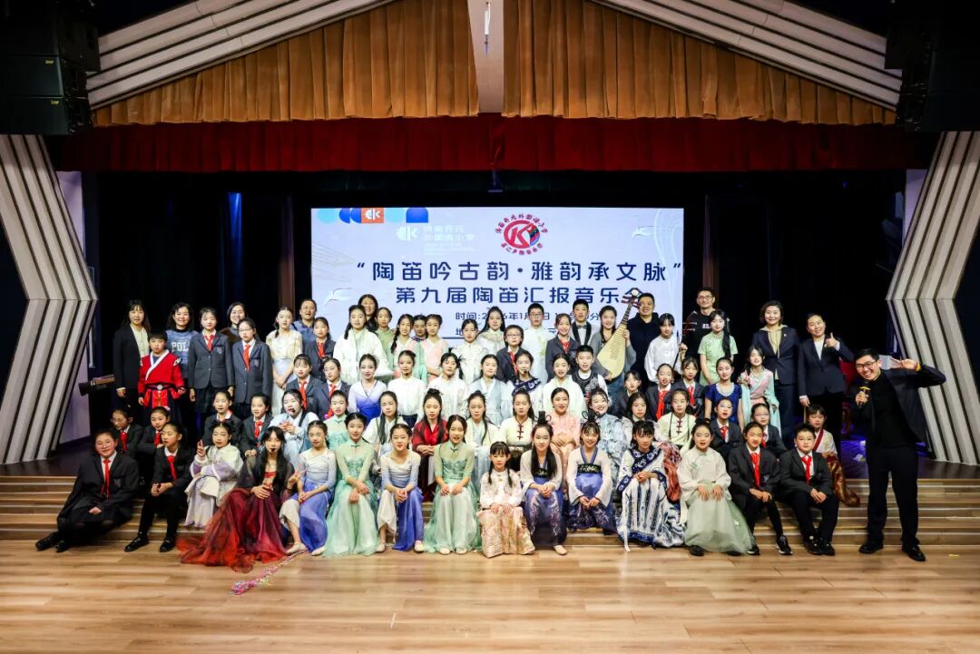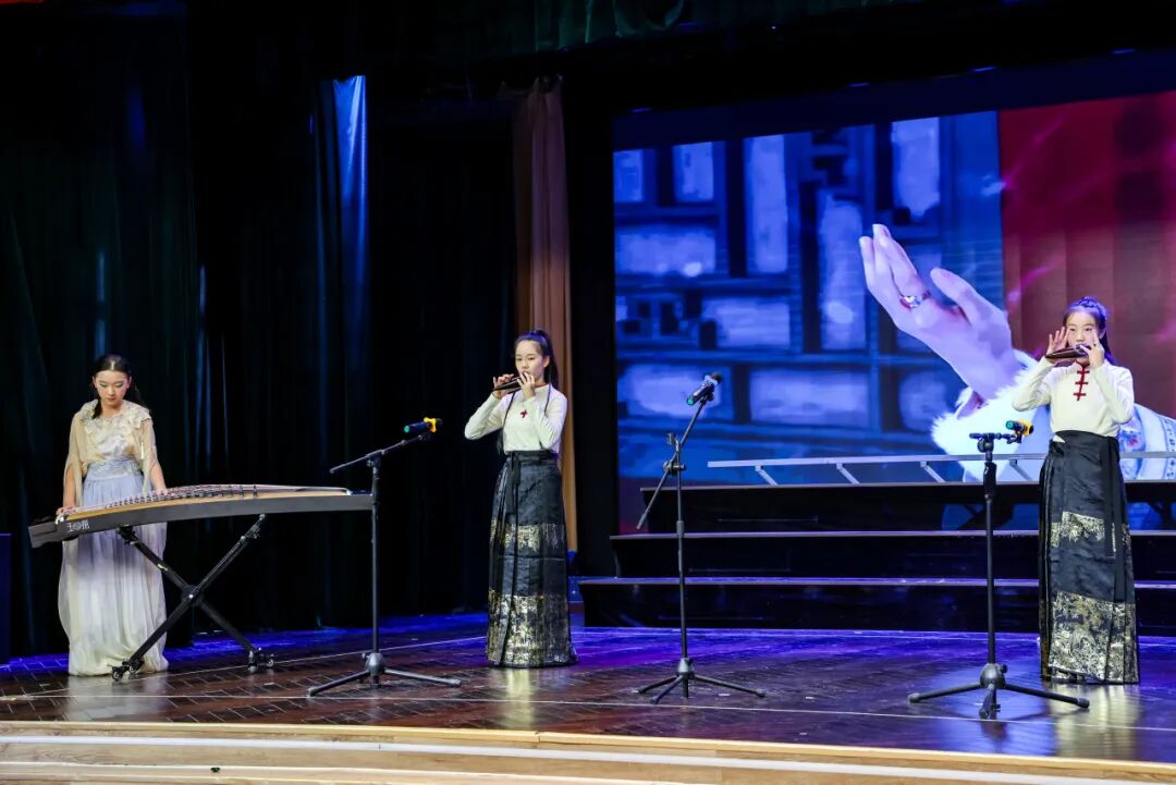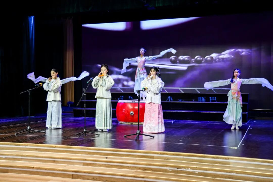音乐会的精彩呈现,离不开指导教师鹿晓晨、温婧的悉心打磨——从充满古意的曲目遴选,到舞蹈、器乐、戏曲等元素的融合编排,每一处细节皆凝聚着“以乐承文脉”的匠心。舞台上的小乐手们,则以专注的演奏与灵动的演绎,将陶笛的古朴韵味与少年朝气完美交融,让传统文化在稚嫩而真挚的诠释中焕发新生。