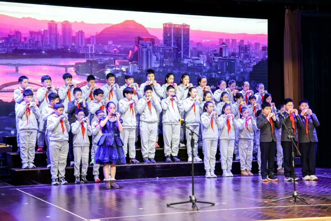 压轴“天下一家·陶笛和鸣”中,五年级八班全体学生与十团学员同台合奏,《That girl》《龙的传人》《上春山》连缀中外古今,最终以全体合唱《能不能不要说再见》收尾,将留恋与热爱洒满剧场。