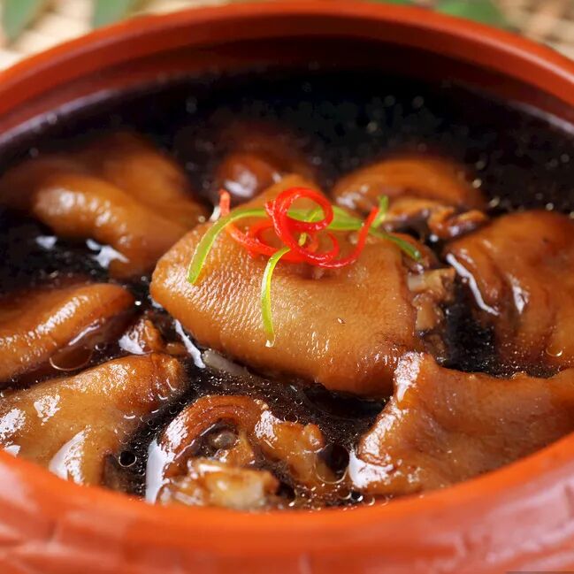 以猪蹄为主料,经江西瓦罐小火慢煨数小时而成,汤汁浓白、肉质软烂,兼具美味与养生价值,是江西饮食文化中“慢工出细活”的典范。