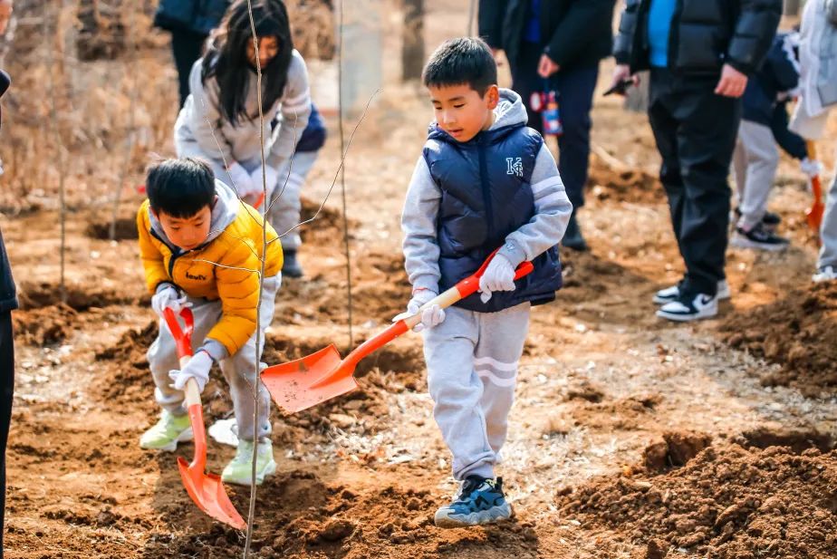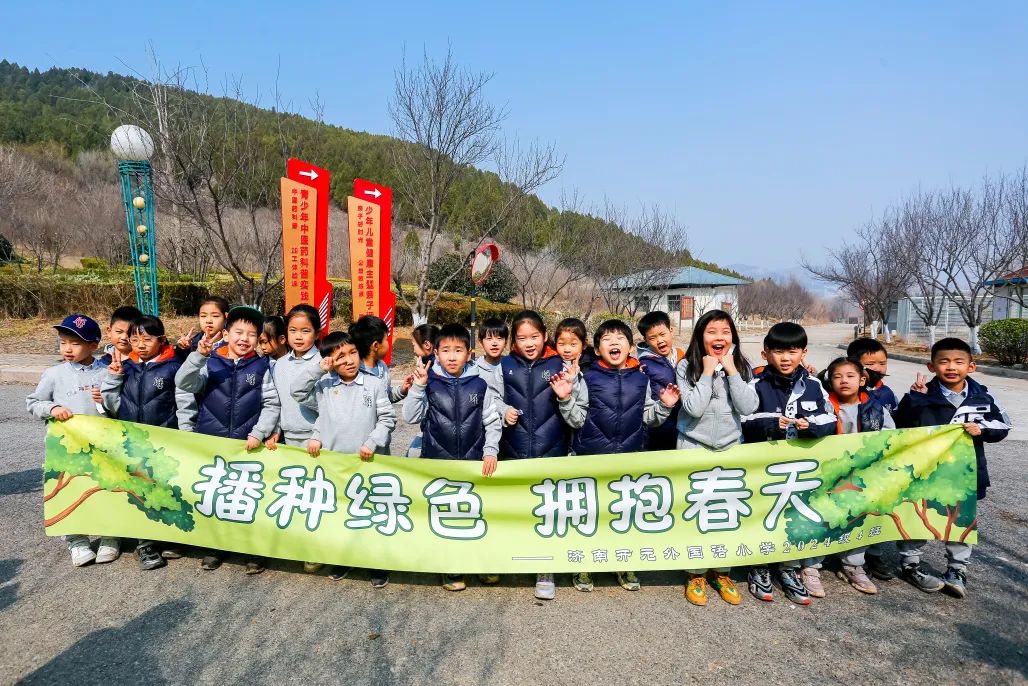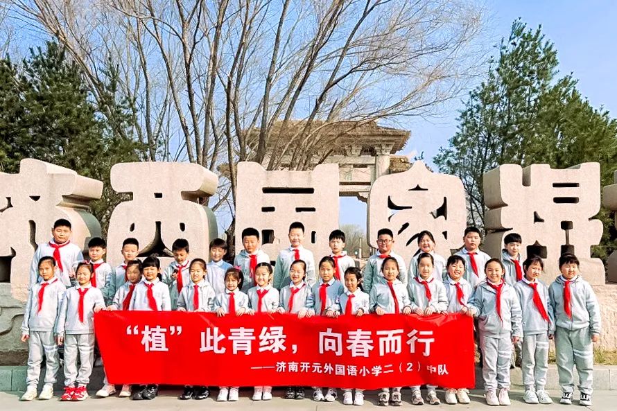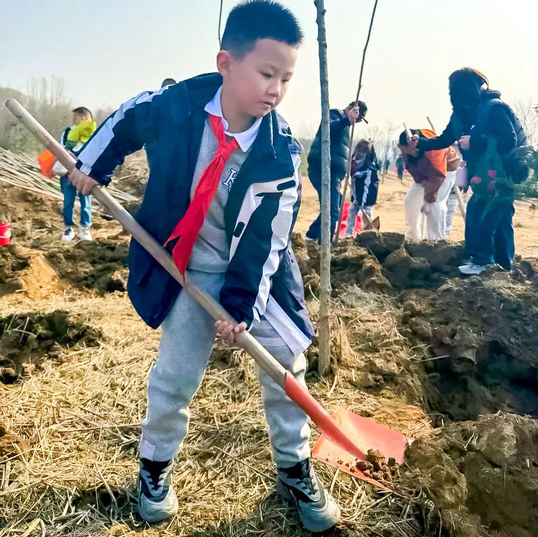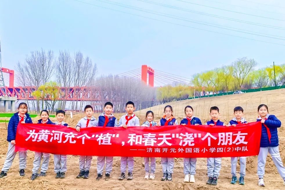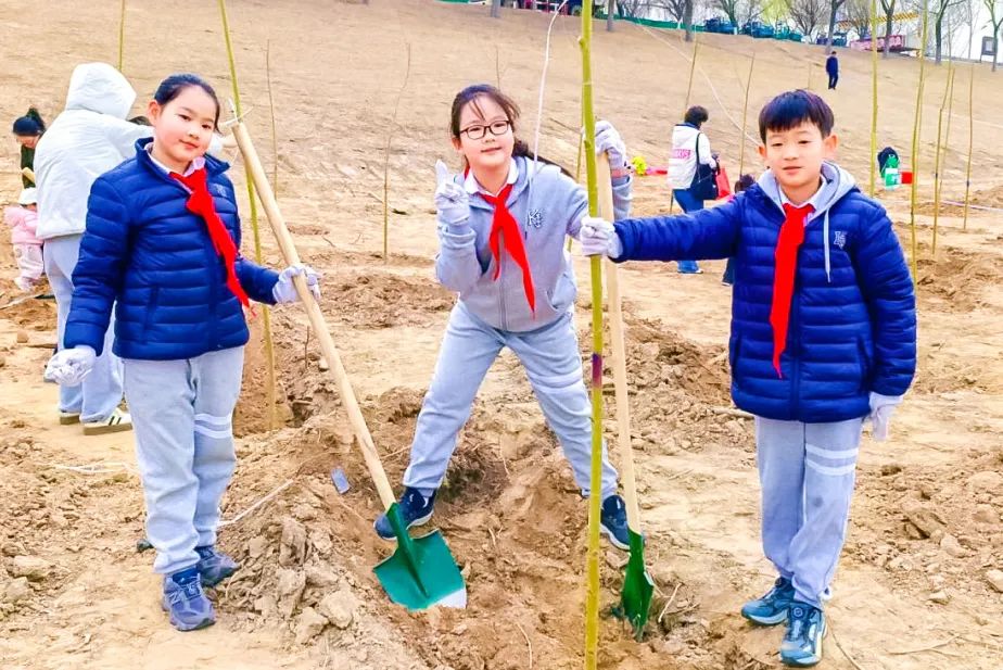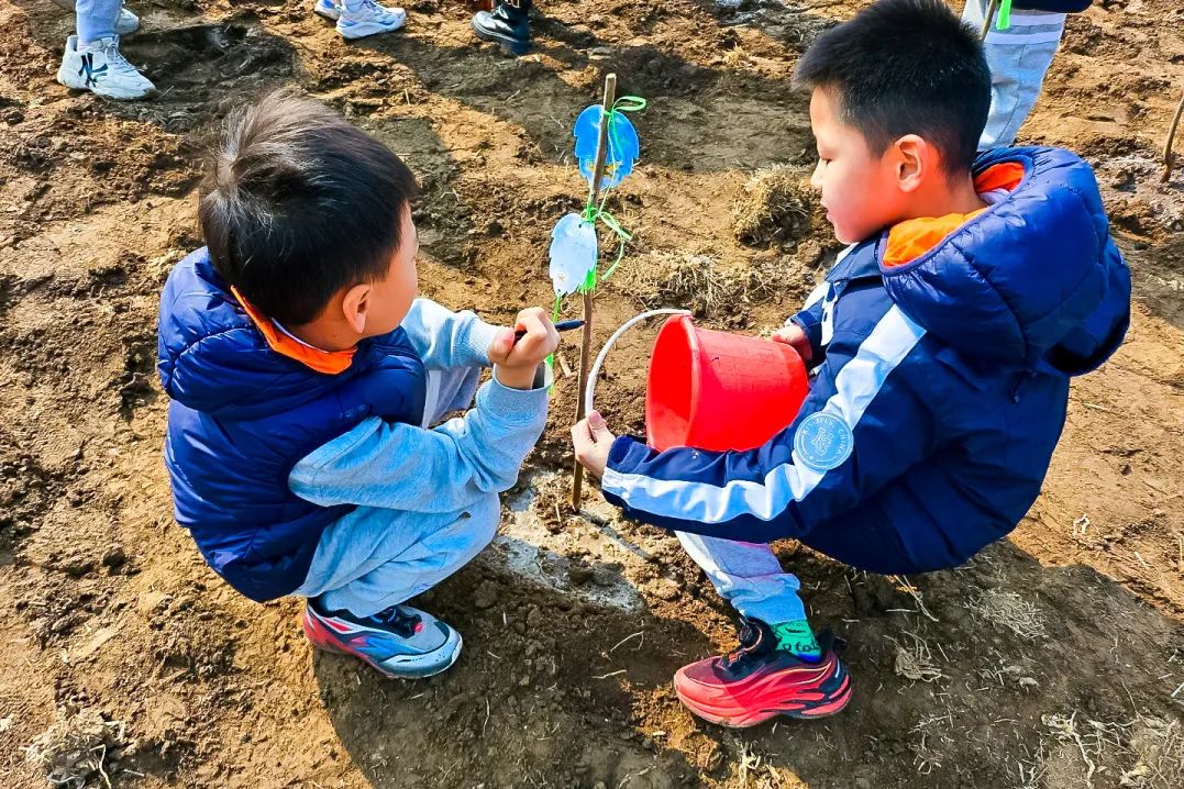 济南开元外国语小学各班级组织了丰富多彩的主题活动,孩子们亲手种下一株株嫩苗。这些散落泉城的树苗汇集如绿色星群,而沾满泥土的校服背影,正成为这个春天最灵动的韵脚。