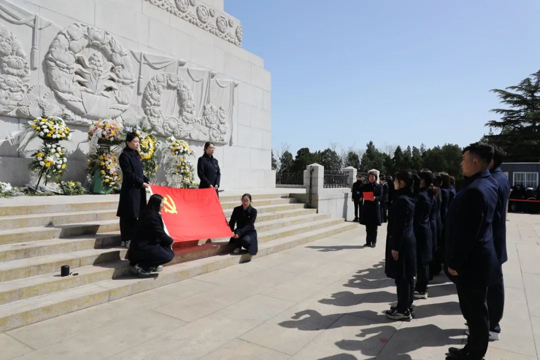 同学们徒步来到烈士陵园区域,怀着无比沉痛的心情,开展祭扫活动。各班级分组擦拭墓碑,献上鲜花,以质朴而真诚的方式,表达对革命先烈的无限哀思。