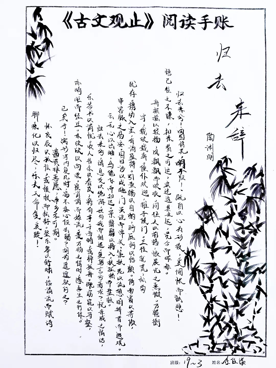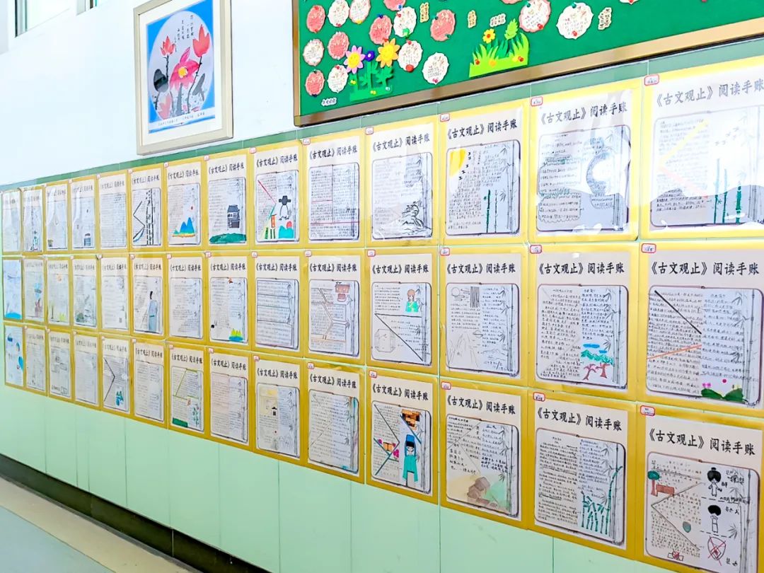 在思维碰撞中深化对书籍的理解,拓宽知识视野,同学们将个人的阅读体悟转化为群体智慧的星河,再以丹青妙笔将《古文观止》手帐缀玉成帘,方寸书页间流转千年文脉。