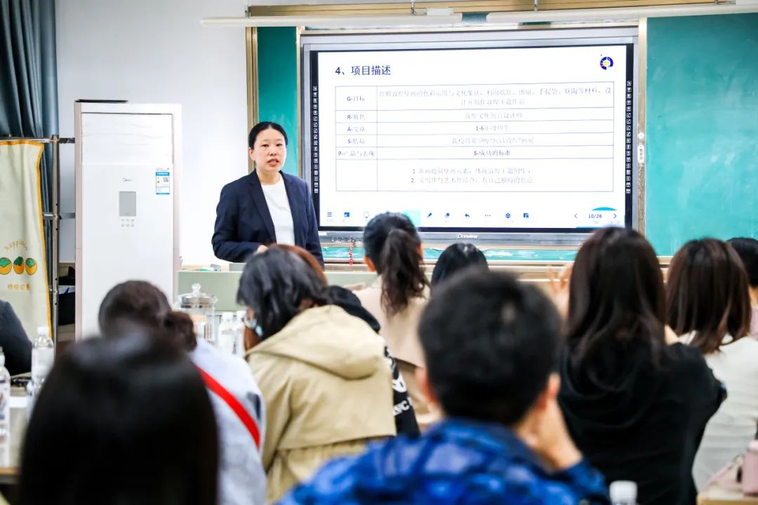 本次活动,我校美术备课组以展览为核心,匠心独运地设计了三大教研环节。活动伊始,尹老师带来一场别开生面的敦煌主题项目式学习实践报告。报告中,尹老师将敦煌壁画艺术细细解构重组,深入浅出地分享如何将这些古老艺术瑰宝巧妙融入课堂教学,打开了全新的教学思路。
