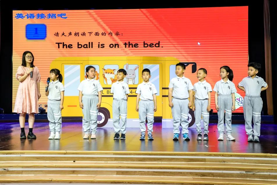 “英语接招吧” 环节紧张刺激,现场随机抽选观众挑战多元题型。从专注听力精准作答,到欢快演唱英文 Chant,再到标准朗读、流畅阐释图片,全方位检验学生英语综合能力,点燃赛场激情,尽显英语学习的活力与风采。