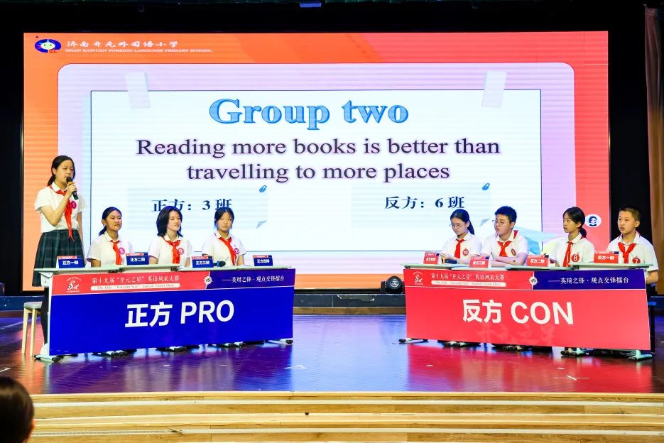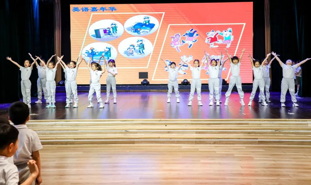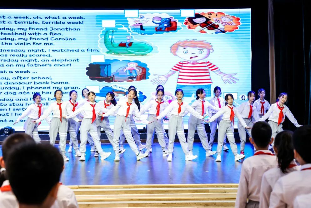 英语嘉年华以 “童声筑梦・剧说千秋・思辨未来” 三大篇章开展。一二年级学生传唱世界童谣,三四年级化身戏剧主角重现经典,五六年级围绕电子书与纸质书等辩题展开英文辩论,各学段学生在活动中展现不同的英语学习风采。