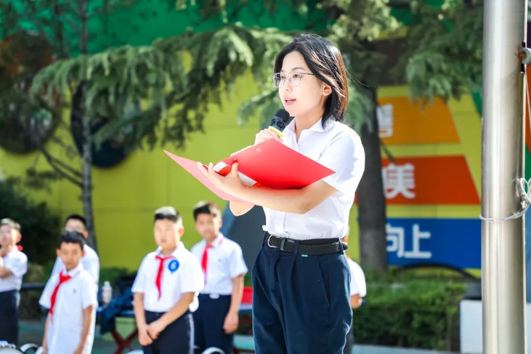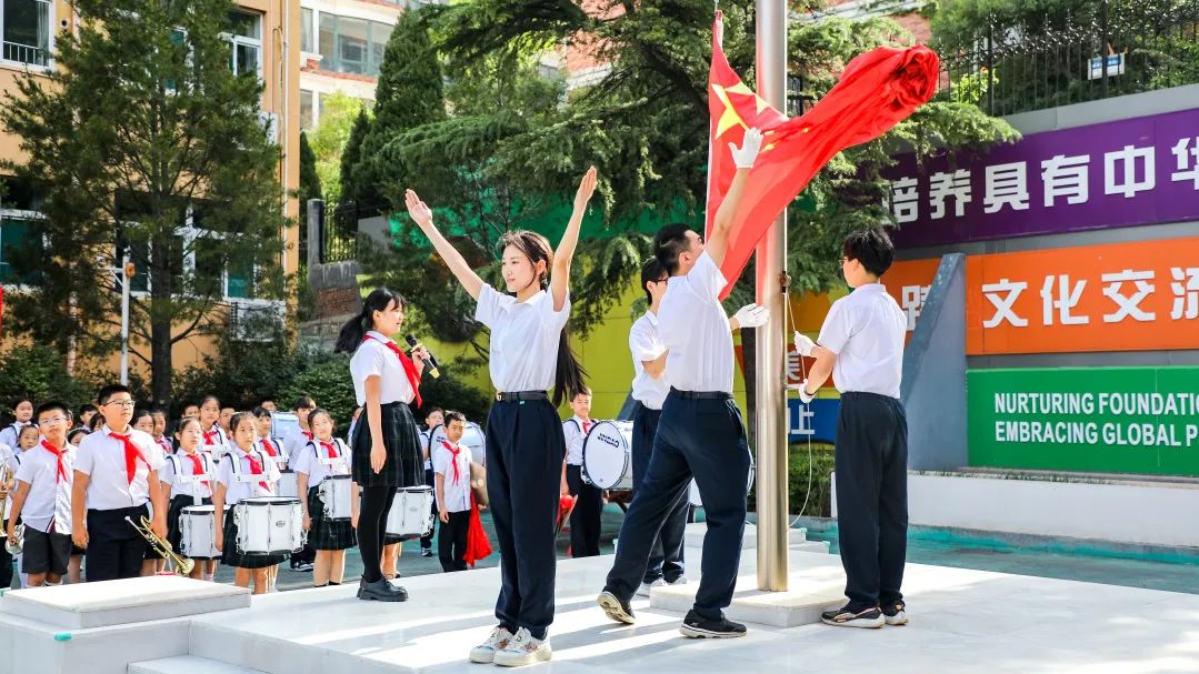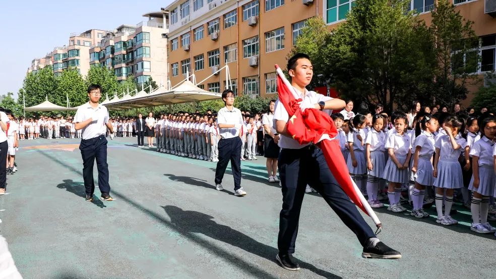 清晨7:40,全校师生以及家长代表共同见证了一场特别的升旗仪式——2019届毕业生杨冠中、栾柏逸、王钟迪担任升旗手,他们拉动绳索的弧度,与六年前作为少先队员敬礼的姿势完美重叠。