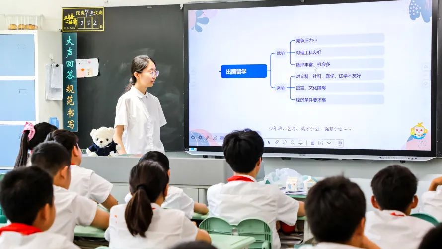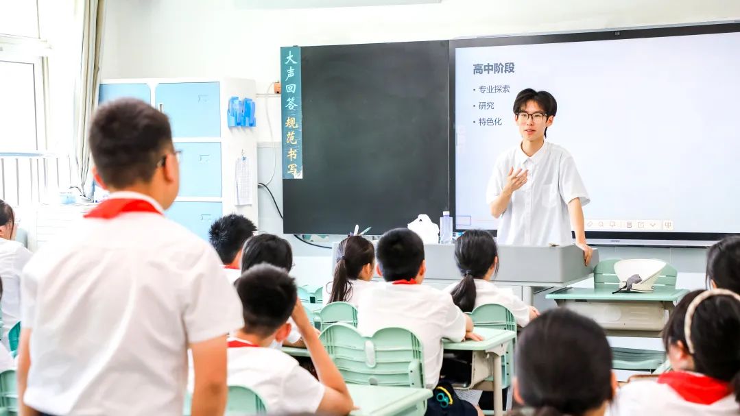 六年级教室里,毕业生们坐在曾经的座位上,笑着接过学弟学妹的“灵魂拷问”,针对他们的困惑一一解答,也把自己的经验倾囊相授。