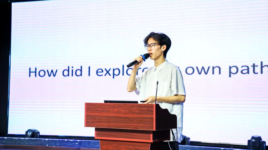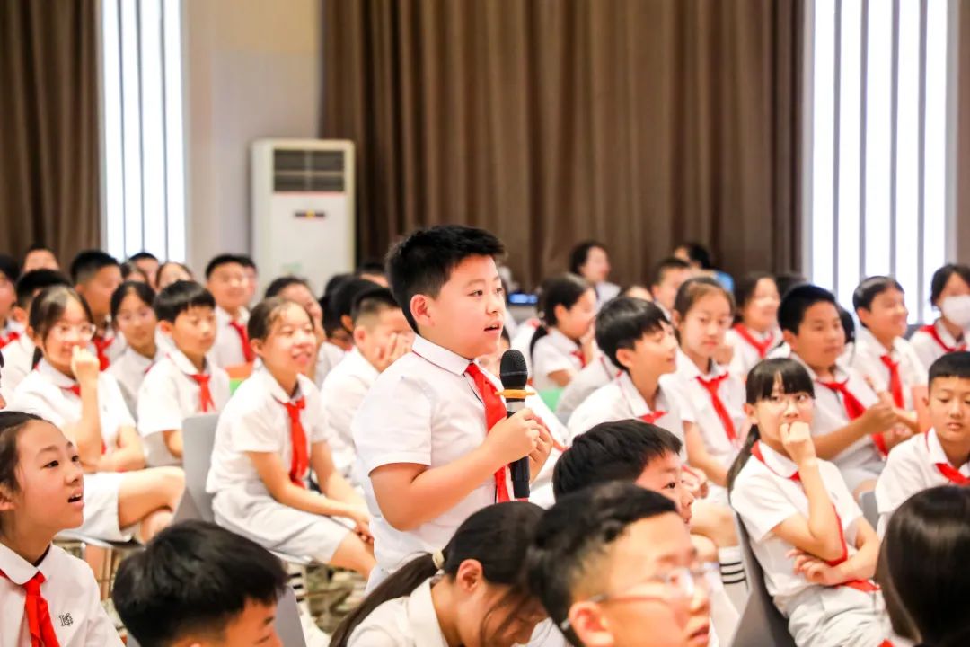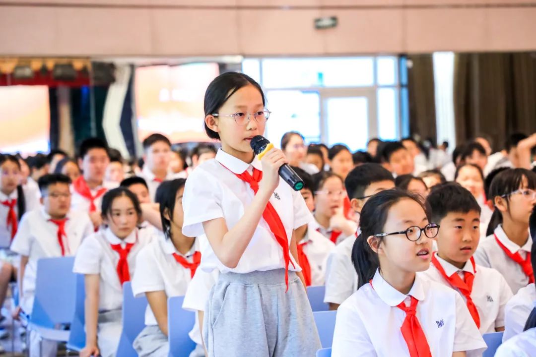下午的报告会上,杨冠中展示了他的笔记本,密密麻麻的全是努力的印记,于东杨回忆了小学时芭蕾班和钢琴班的故事,表达了小学的兴趣与爱好奠定了她的未来之路,栾柏逸回忆小学时参加周四机器人特长班的情景,说这些过去为他打开了一扇新的大门。