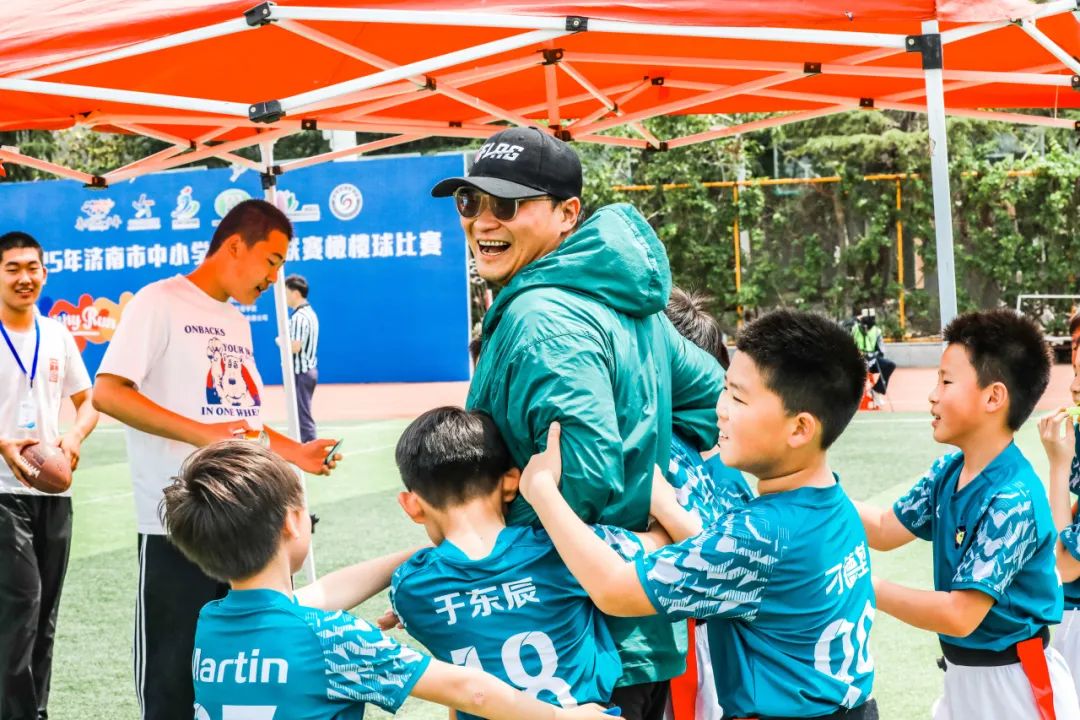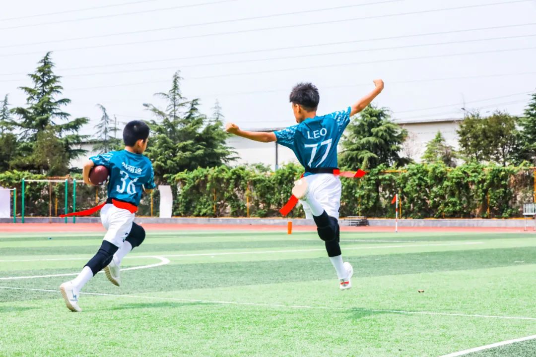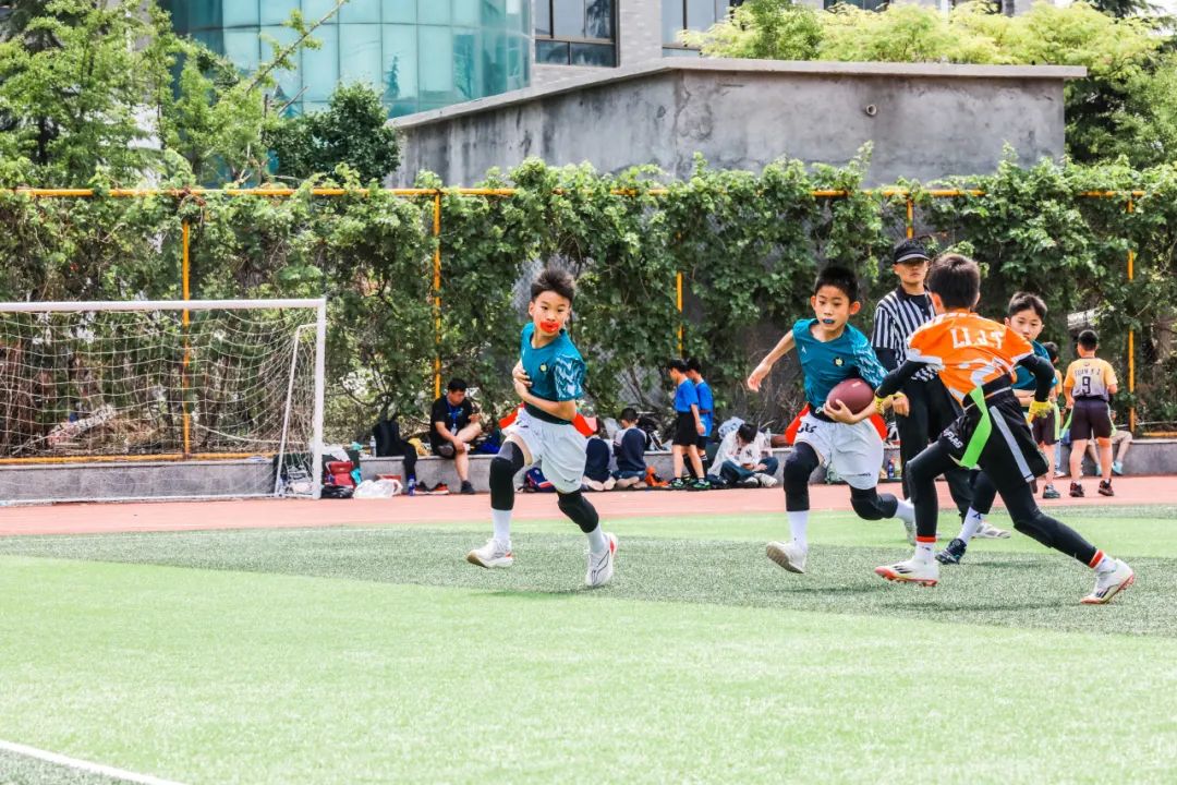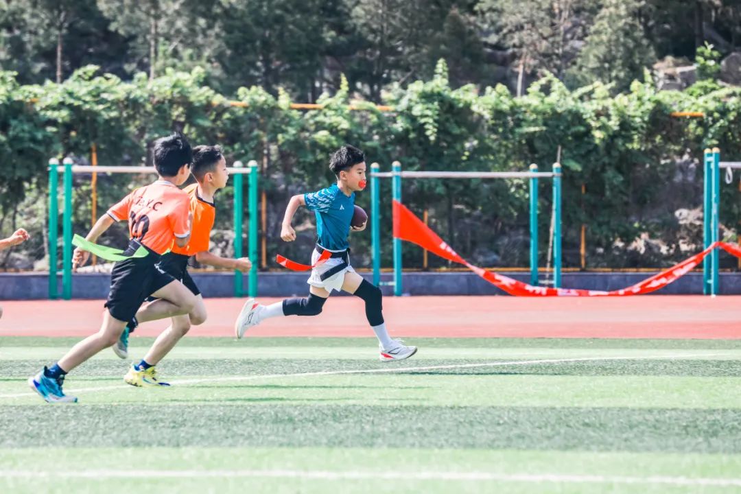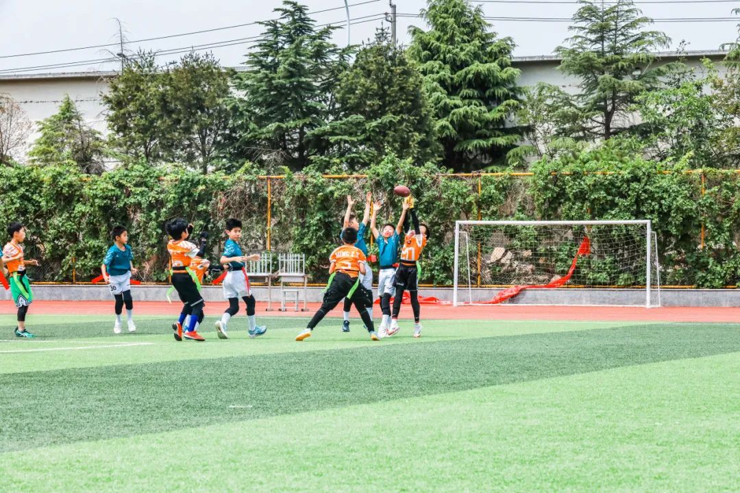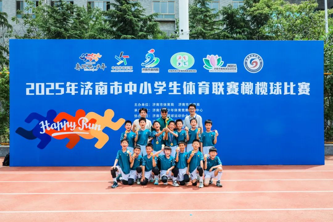 在5月25日“奔跑吧·少年”2025年济南市中小学生体育联赛橄榄球比赛中,我校新组建的腰旗橄榄球队以黑马之姿横扫赛场,首次出征市级联赛便以12:0的绝对优势勇夺小学男子乙组桂冠,用拼搏的汗水在绿茵场镌刻下 “首秀即巅峰” 的热血印记。