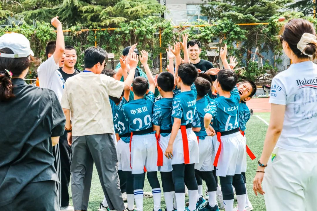 面对跨年级组队磨合与零基础起步的双重挑战,队员们在在教练组的精心指导下,利用每周五课余时间开展高强度集训,从基础战术到实战对抗,从体能储备到心理建设,用三个月时间实现了从橄榄球“小白”到冠军队的蜕变征程。