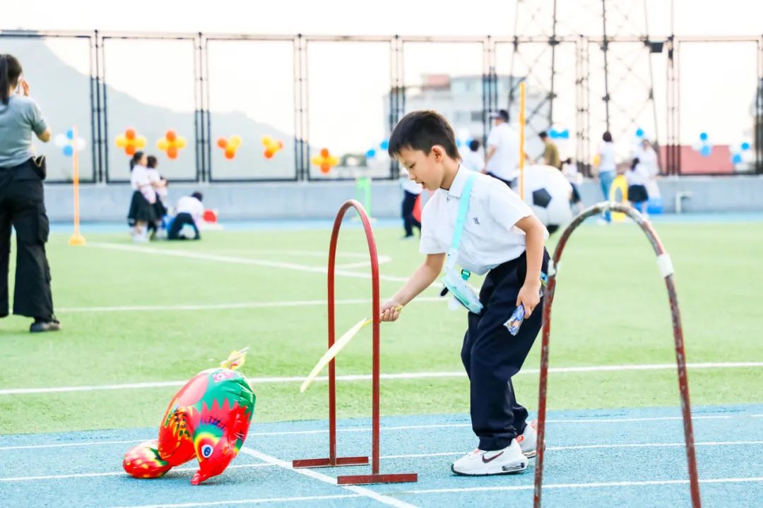 “疯狂摇摆”的赛场上,绑着塑料箱的孩子蹦得像弹簧,小球噼里啪啦掉满地时,满场都是兴奋的欢呼声。