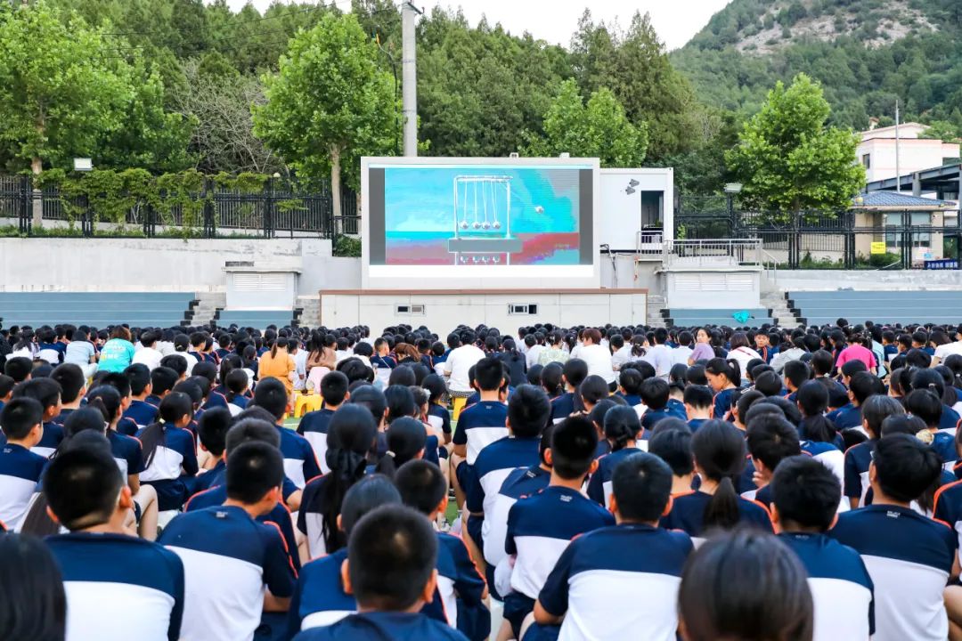 暮色中的校园绿茵场,化作露天影院。全校师生共赏科普佳作《寻秘自然:无形之力》,以震撼影像探秘“湍流之谜”与“快速射电暴”,于星空下为童心点亮科学梦想。