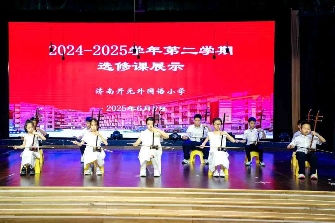 近日,济南开元外国语小学期末选修课成果展示在开元剧场璀璨上演。街舞拉丁活力四射、合唱二胡婉转悠扬、英语戏剧与开元剧社智慧碰撞……九大课程方阵联袂献艺,编织出一场融合传统与现代的视听盛宴,诠释了开元多元选修课的育人硕果。