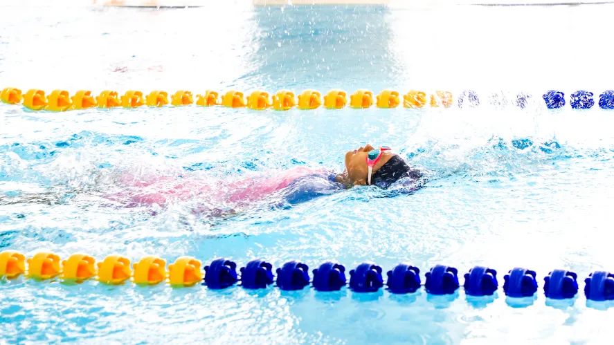 25米仰泳:看!孩子们仰卧水面,双臂划出流畅弧线,像在水上“优雅漫步”,比拼速度与淡定。