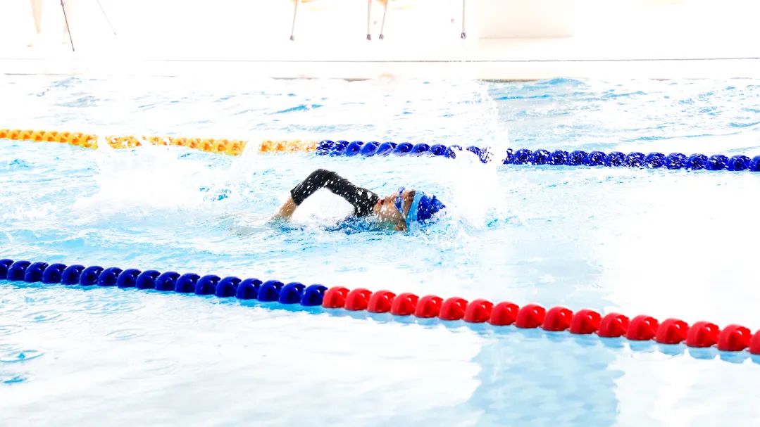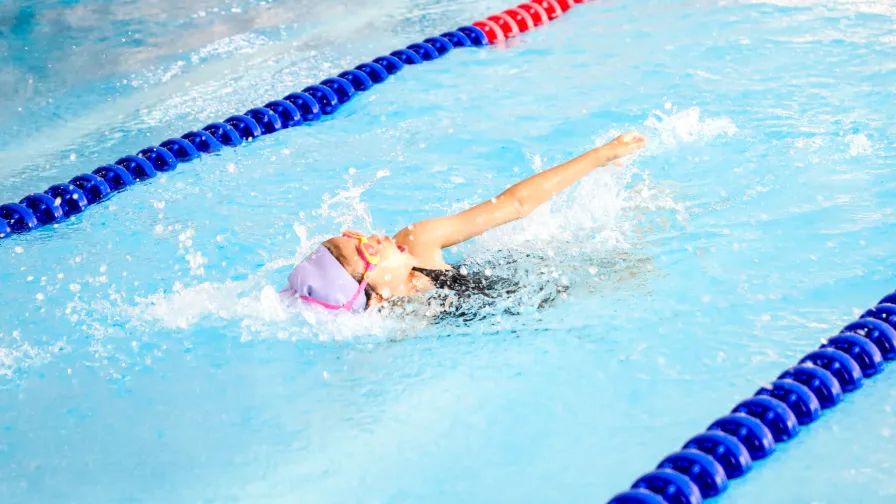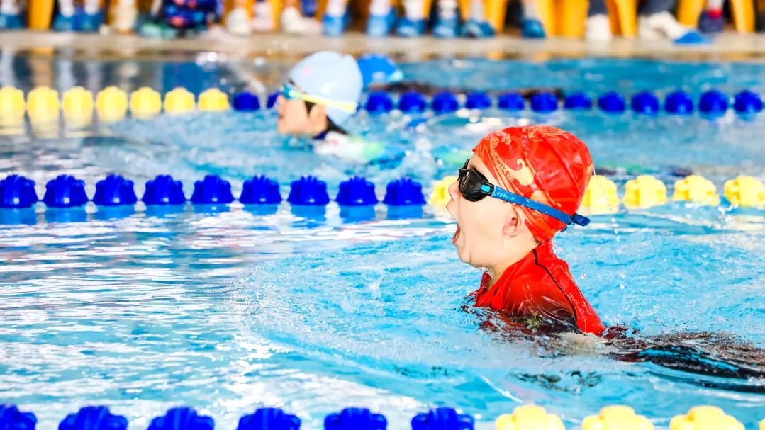 竞技游泳项目火力全开!小选手们按性别分组,在三条赛道上展开激烈角逐。