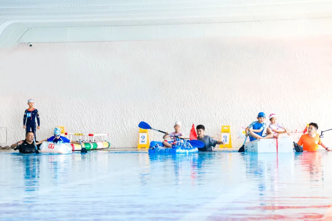 寻宝之旅的高潮——“船王争霸赛”火热上演。各小队精心打造的“宝藏船”闪亮登场:方正的“堡垒号”、流线的“闪电号”、五彩的“彩虹号”……裁判一声令下,小船载人下水!