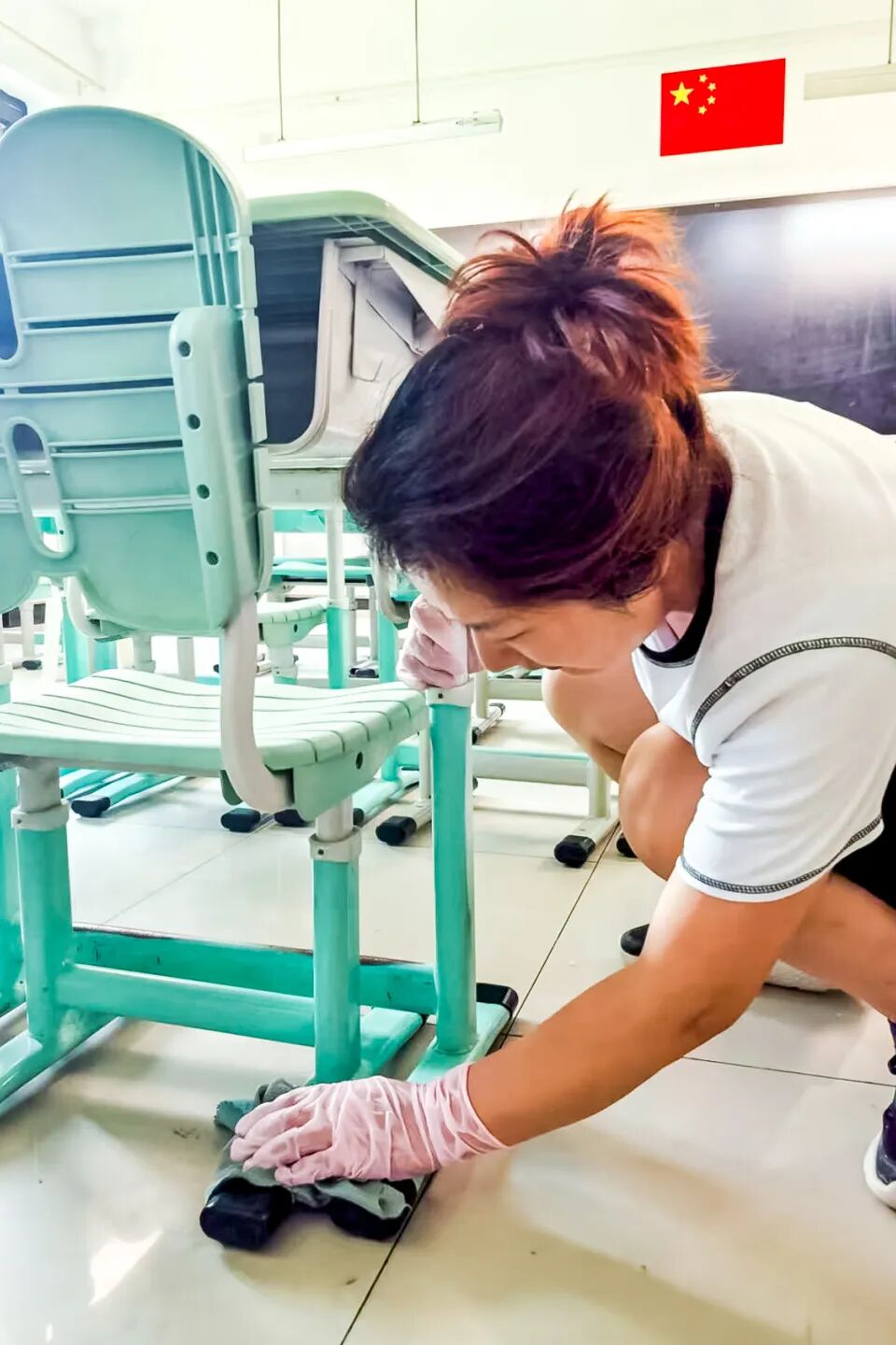 彻底清扫消杀:生活老师们对教室、宿舍进行了无死角的深度清洁与消毒,从教室用品到宿舍床褥,不放过任何细节,全力保障孩子们的健康安全。