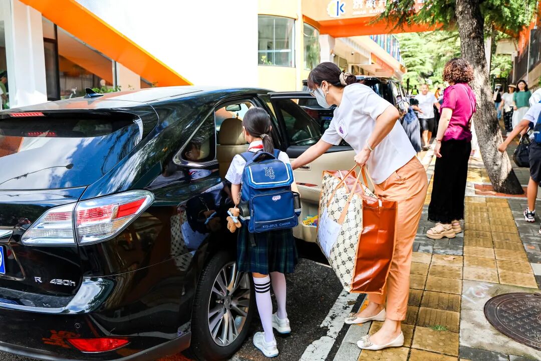 熟悉的校门口依然有这道温暖的风景线——老师们早早到位,化身“超人”,用最灿烂的笑容和最有力的双手,迎接每一位同学:拉开车门、接过行李……同学们欢快地奔向老师,一个标准的队礼,一次热情的击掌,都成为了学校里最动听的音符。