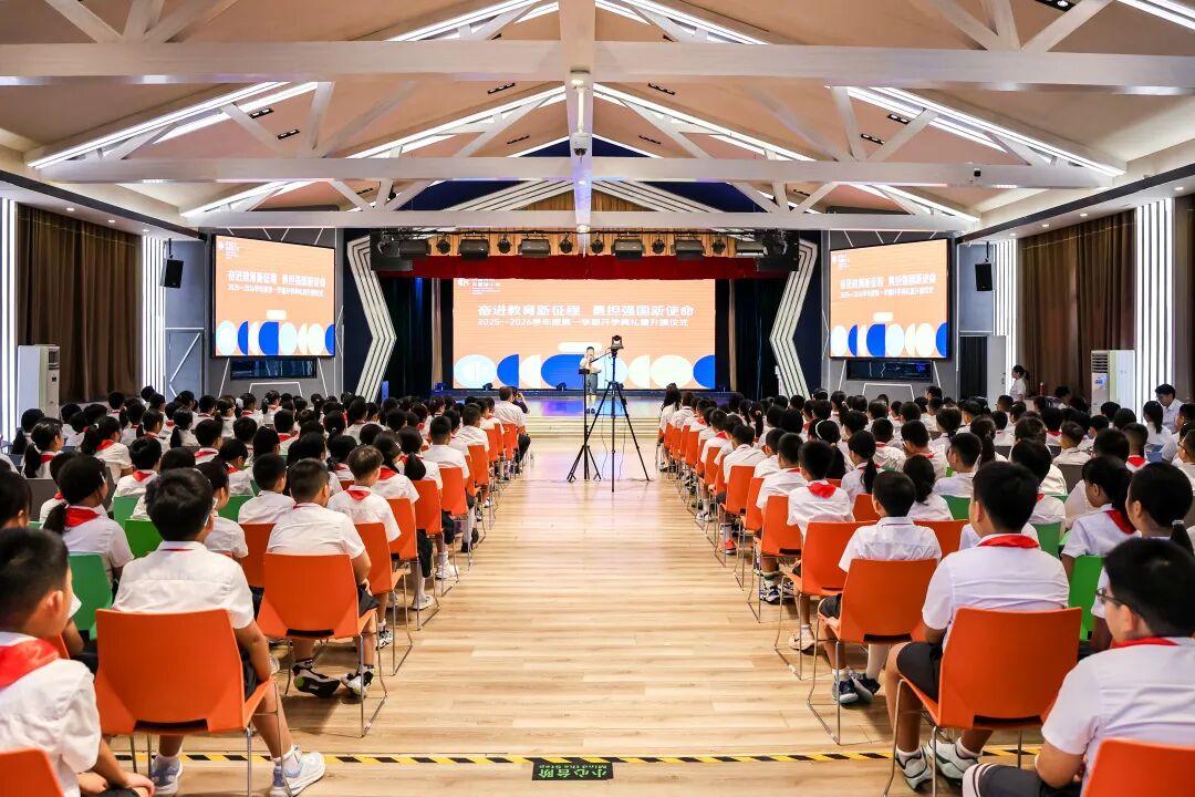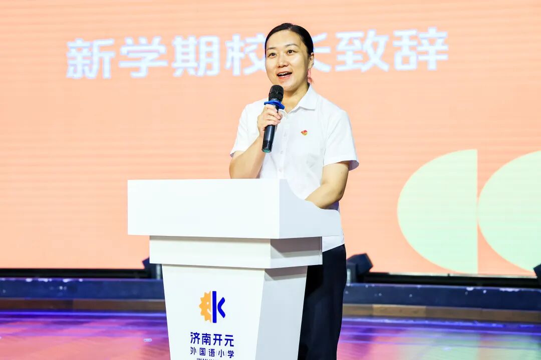 学校执行校长卢可欣在新学期致辞中,充分肯定了同学们在上学期取得的优异成绩及暑假期间的收获与成长,并热烈欢迎一年级新同学的加入。卢校长还为大家介绍了学校新设计的标识LOGO和吉祥物,并对新学期提出了殷切的希望和具体的要求。