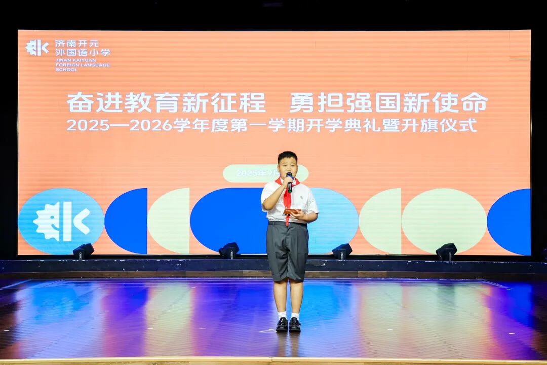 上午8:30,学校在开元剧场隆重举行新学期开学典礼暨升旗仪式。激昂的国歌声中,师生齐声高唱,澎湃的爱国情怀在心中回荡;深情的开学辞,不仅诉说着同学们对新学期的憧憬,也承载着他们对成长的渴望与追求。