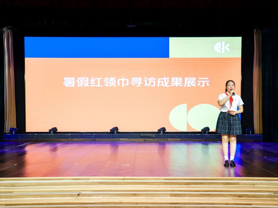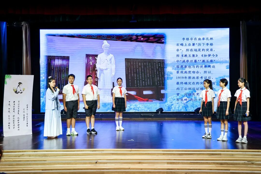 暑假期间,同学们积极参加了“泉城记忆·古城寻踪”红领巾寻访主题实践活动,通过实地探访、任务驱动和多元展示等形式,在“行走的课堂”中深入品读济南的历史文化。开学典礼上,三个中队分别展示了他们的实践成果: